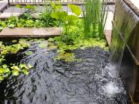 We begun this rebuild last Fall. It is now complete and we just performed our first service call this week. The koi we introduced a couple of months back have really grown. Water is crystal clear - thanks to the vortex which was packed with debris